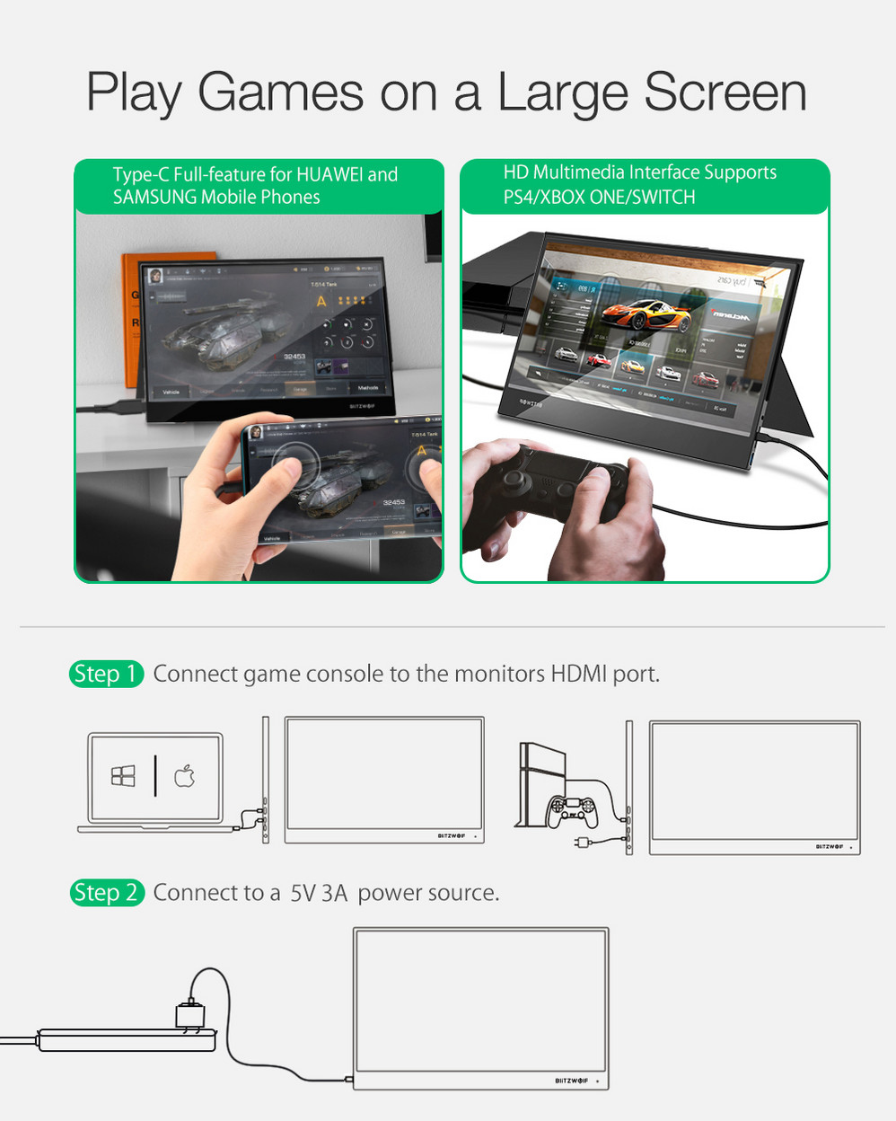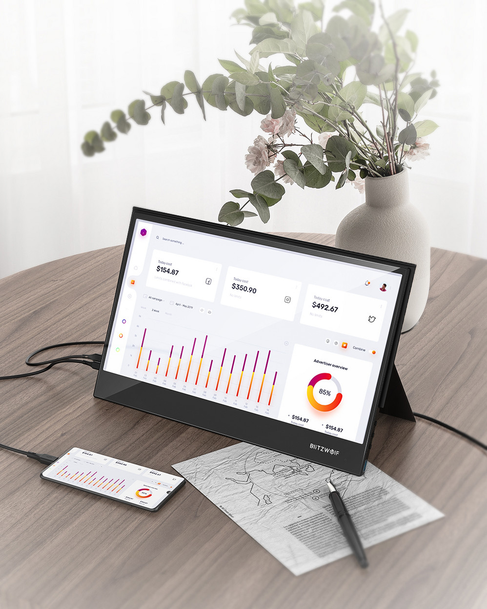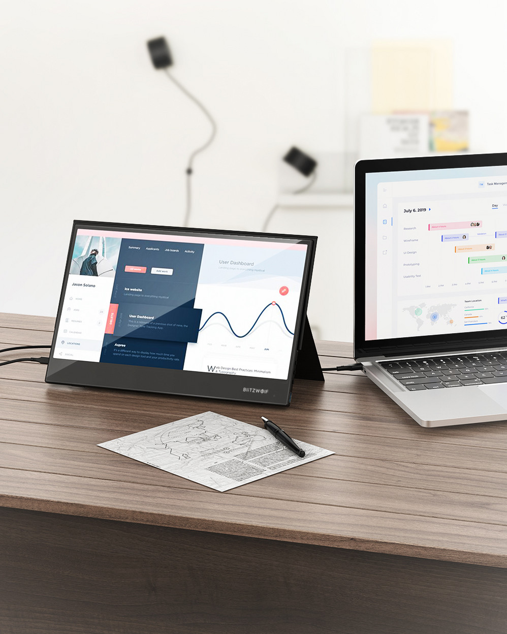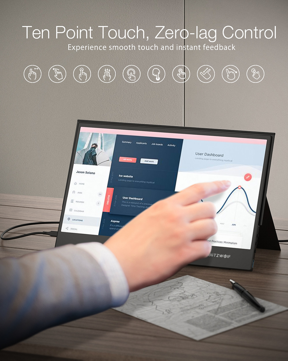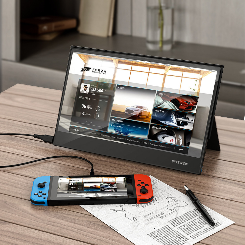 BlitzWolf® 15.6" Touch Monitor TFT LCD with 3840*2160 UHD, 4K@60Hz, Touch Screen, Full-view IPS Screen, Stereo Sound, Type-C Full-feature and OSD Button
